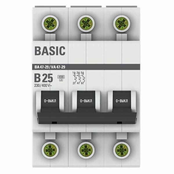 Автомат. выкл. 3-пол. 25А тип B 4,5кА серия ВА 47-29 EKF
