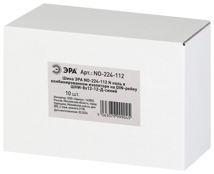 Шина ЭРА NO-224-112 N ноль в комбинированном изоляторе на DIN-рейку ШНИ-8х12-12-Д-синий
