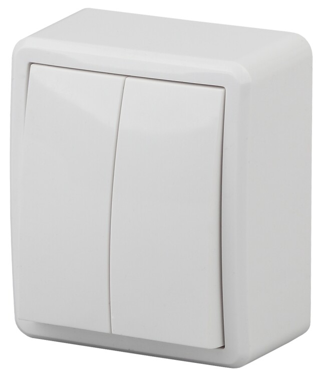 11А-1204-01 ЭРА Выключатель двойной, 10АХ-250В, ОУ, Эра Эксперт, Al+Cu, белый (16/160/2880)