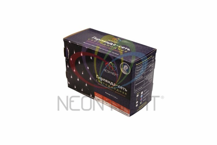 Гирлянда светодиодная Сеть 2x1,5м 288 LED БЕЛЫЙ/СИНИЙ черный ПВХ IP65 свечение с динамикой 230В контроллер в комплекте NEON-NIGHT