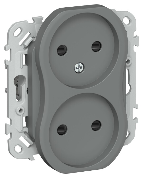 Розетка 2х2P со шторками безвинтовое крепление 10А РСш02-1-ФлМА мокрый асфальт FLITE