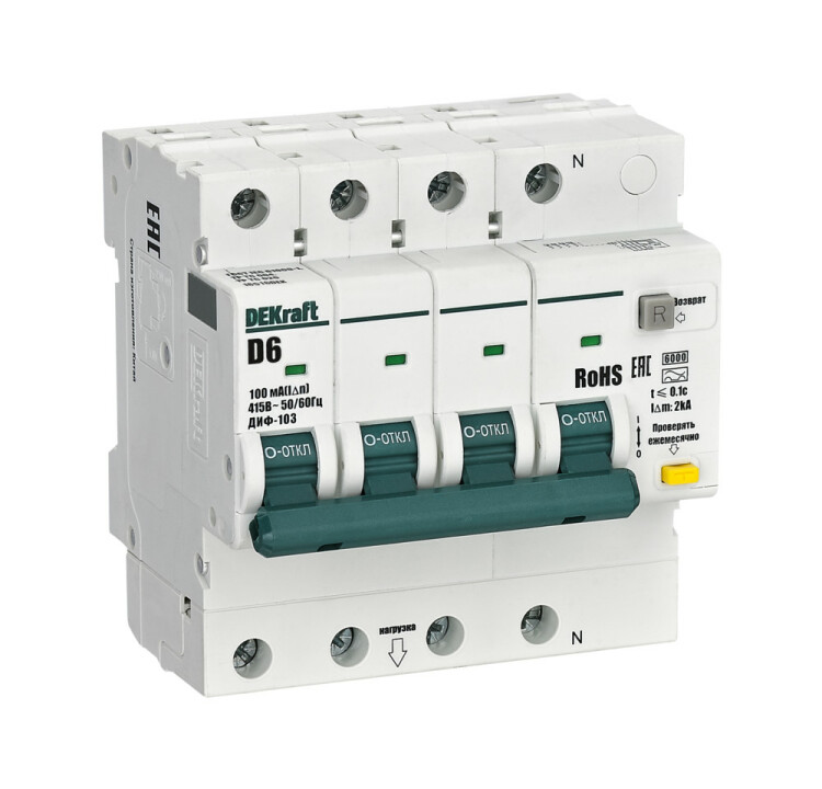 АВДТ 3P+N 6А 100мА AC х-ка D ДИФ-103 6кА