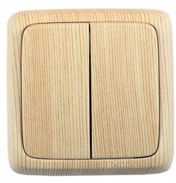 ВА16-153-02 Выключатель открытой установки, двухклавишный, с изолирующей пластиной, цвет сосна