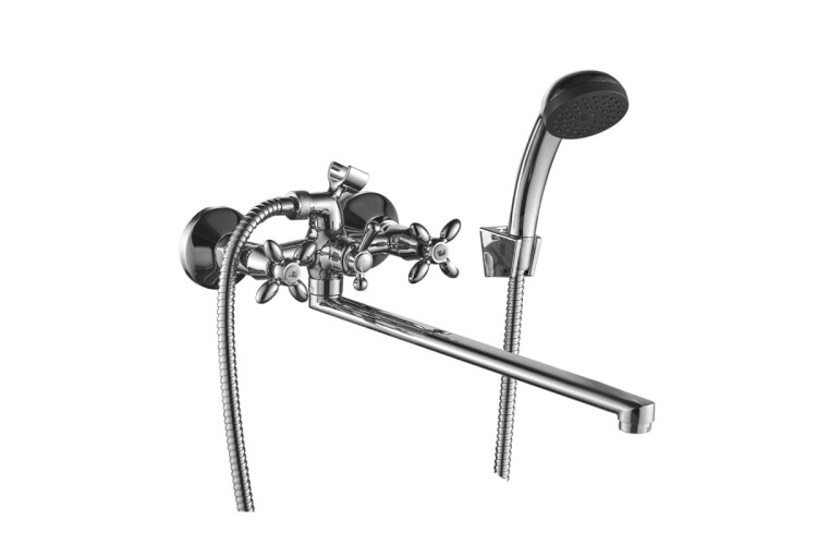 Смеситель двуручный универсальный с поворотным изливом 30см, хром