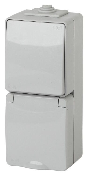 11-7607-03 ЭРА Блок розетка+выкл. верт. IP65, 16A(10AX)-250В, ОУ, Эра Эксперт, серый (5/50/800)