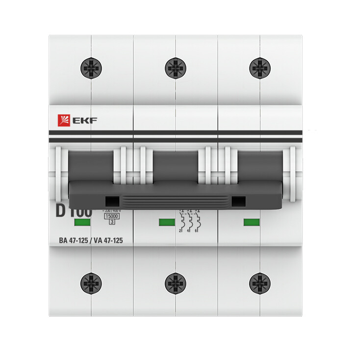 Автомат. выкл. 3-пол. 100А тип D 15кА серия ВА 47-125 EKF PROxima