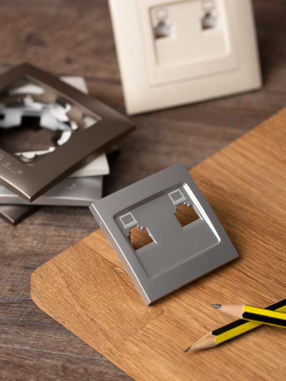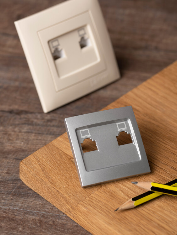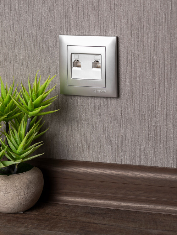 Валенсия лицевая панель розетки RJ-45 2-местная сталь EKF PROxima