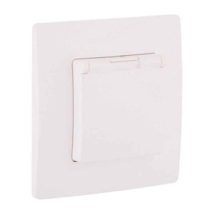 Розетка 2P+E 16А IP44 со шторками с крышкой безвинт. зажим белый Etika