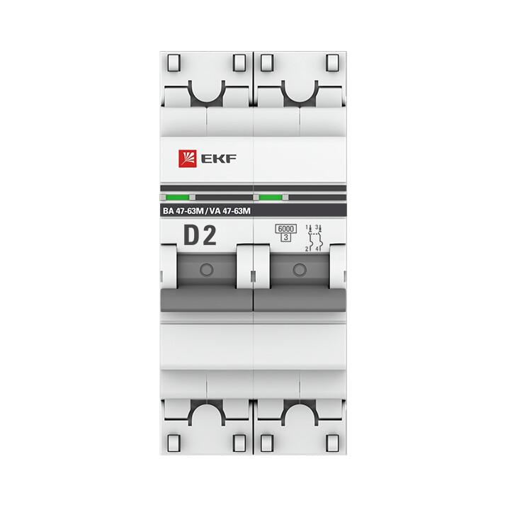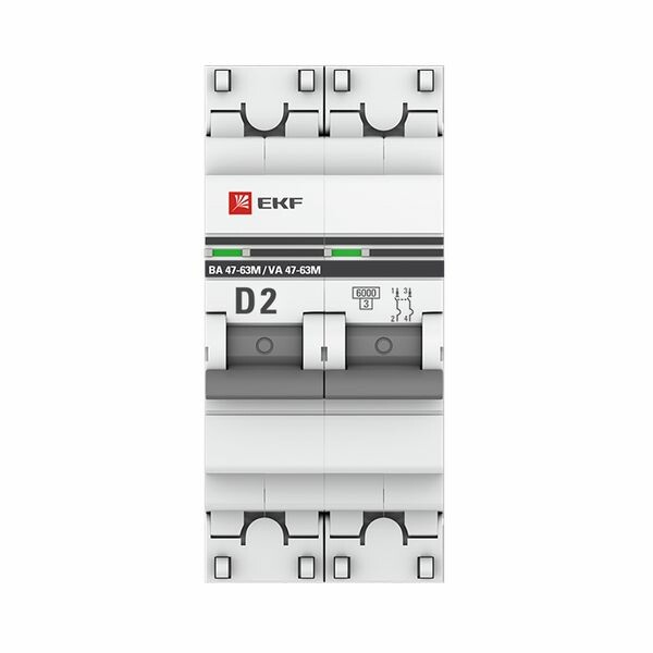 Автоматический выключатель 2P 2А (D) 6кА ВА 47-63M без теплового расцепителя EKF PROxima