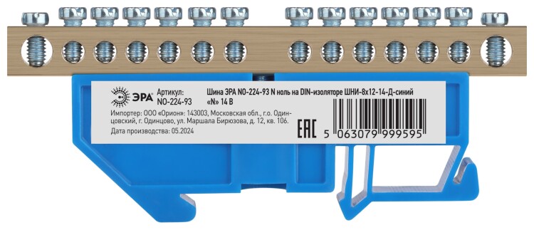 Шина ЭРА NO-224-93 N ноль на DIN-изоляторе ШНИ-8х12-14-Д-синий