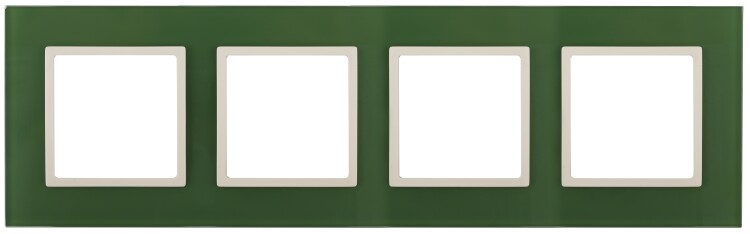 Рамка 4 поста стекло, зеленый+слоновая кость Elegance 14-5104-27