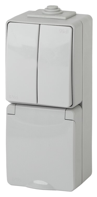 11-7608-03 ЭРА Блок розетка+выкл. двойн. верт. IP65, 16A(10AX)-250В, ОУ, Эра Эксперт, серый (5/50/80