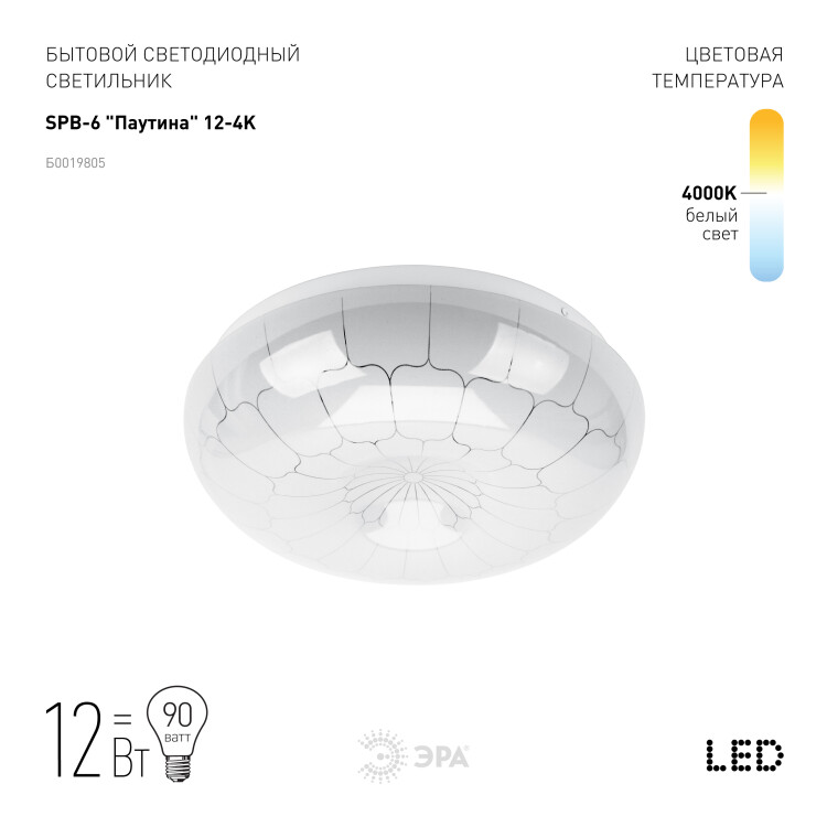 Светильник потолочный светодиодный ЭРА Классик без ДУ SPB-6 Паутина 12-4K 12Вт 4000K 960Лм