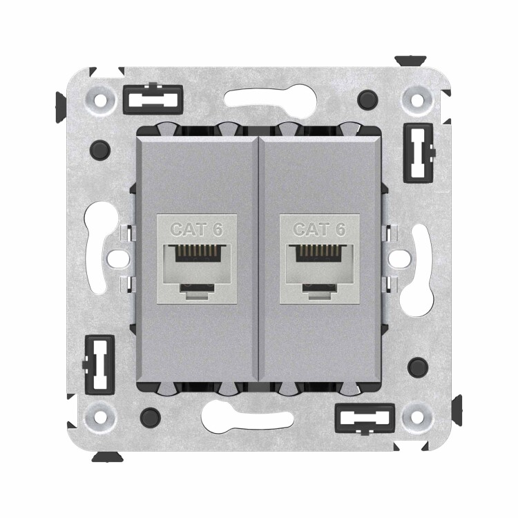Компьютерная розетка RJ-45 без шторки в стену, кат.6 двойная экранированная, "Avanti", "Закаленная сталь"