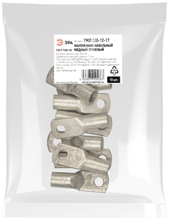 Наконечник кабельный ЭРА ТМЛ 120-12-17 медный луженый ГОСТ 7386-80
