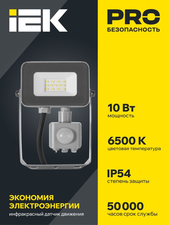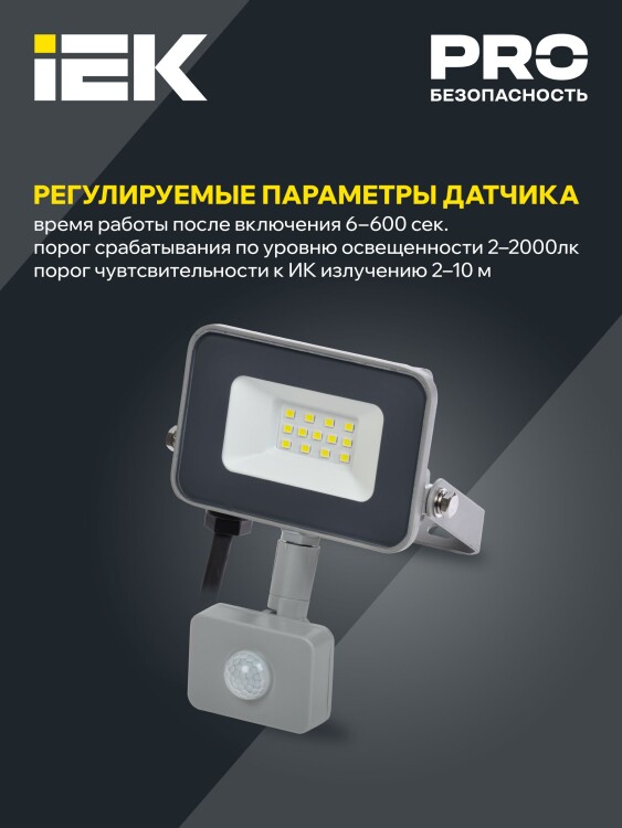 Прожектор СДО 07-10Д светодиодный серый с ДД IP54 IEK