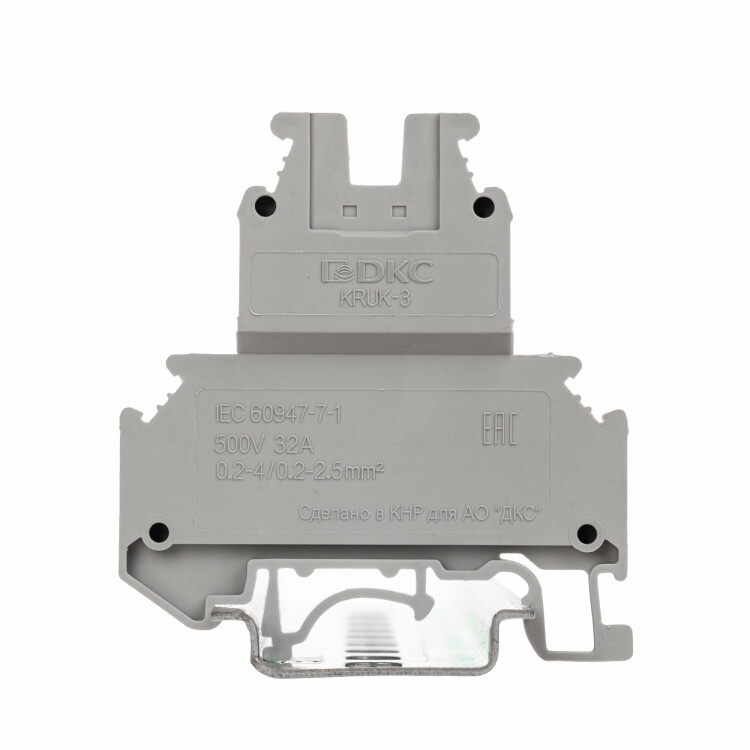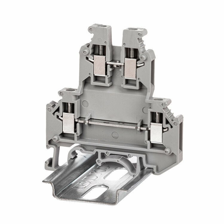 Клемма двухуровневая, винтовой зажим, 4 точки подключения, 2.5 кв.мм, серая