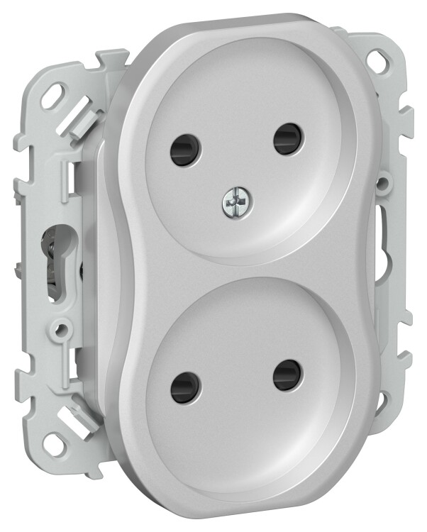 Розетка 2х2P со шторками 10А РСш02-0-ФлА алюминий FLITE
