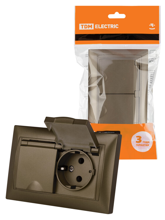Розетка двойная 2П+З 16А 250В IP44 с защ. шт. с крышкой бронза "Лама" TDM