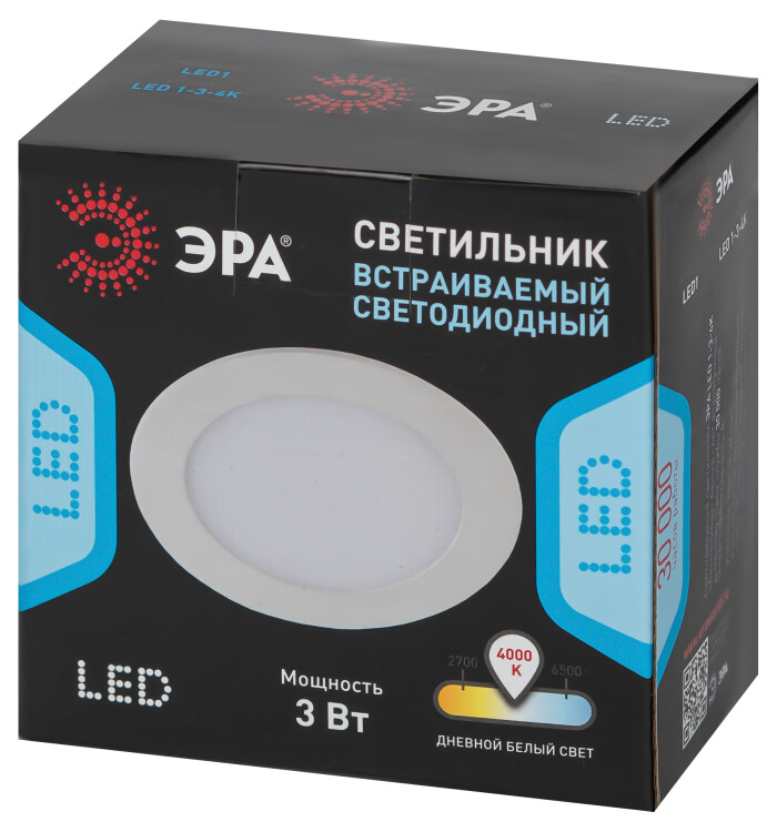 LED 1-3-4K Светильник ЭРА светодиодный круглый LED 3W 220V 4000K (100/1800)