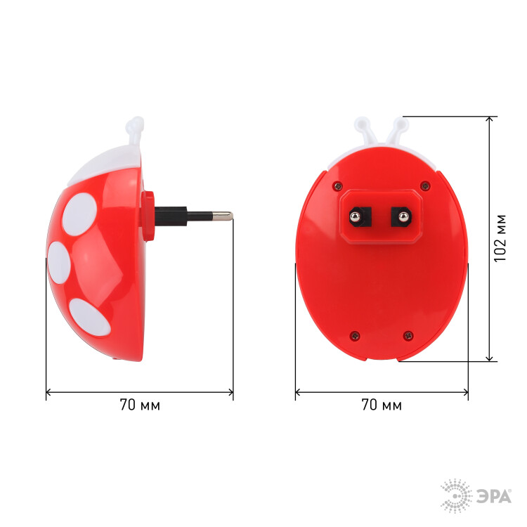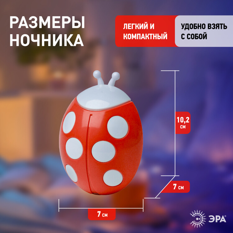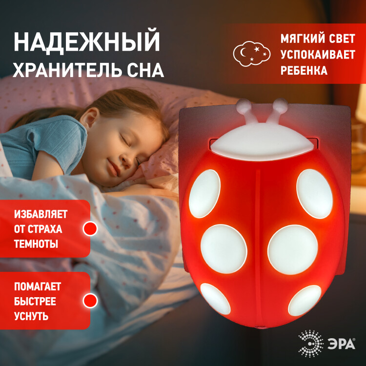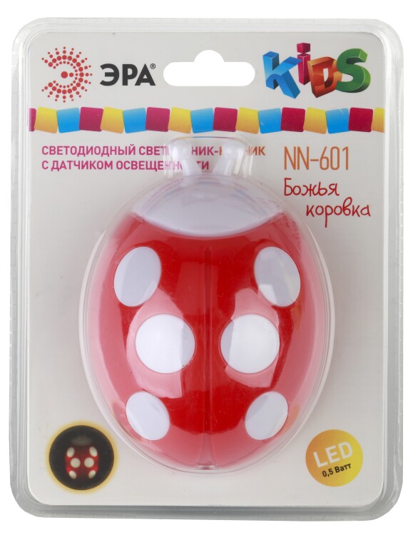 Светильник ночник LED с датчиком освещенности "Божья коровка" красный NN-601-LS-R