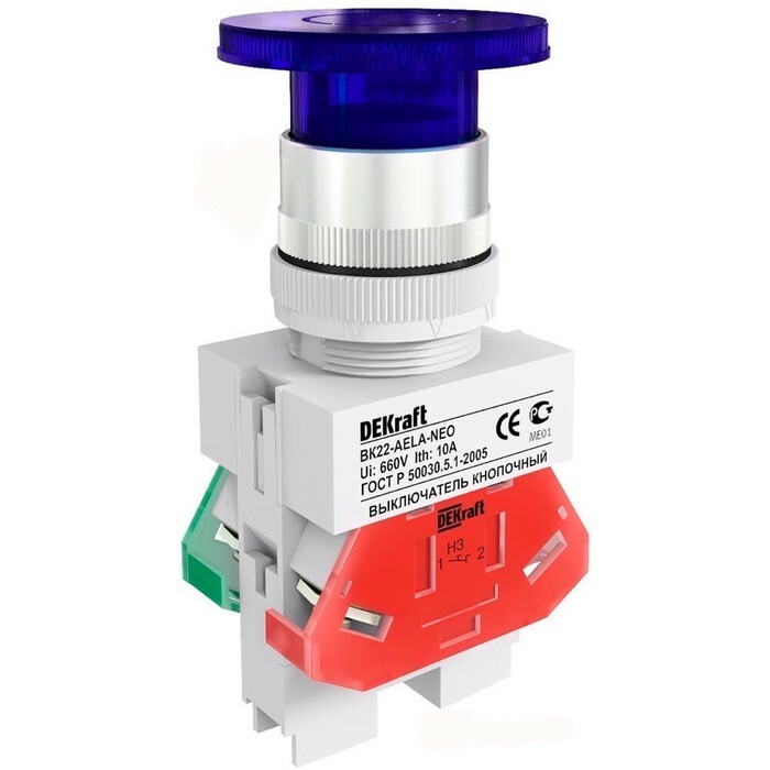 Выкл. кноп. грибок AELA ?22 мм Цвет:СИНИЙ неон 220В