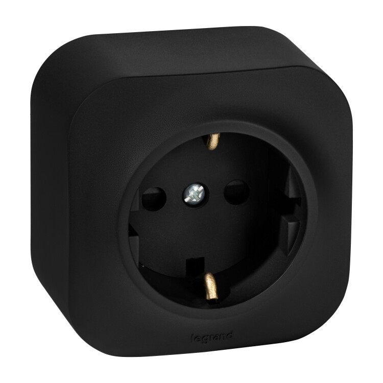Розетка 2P+E 16А со шторками чёрный матовый Quteo