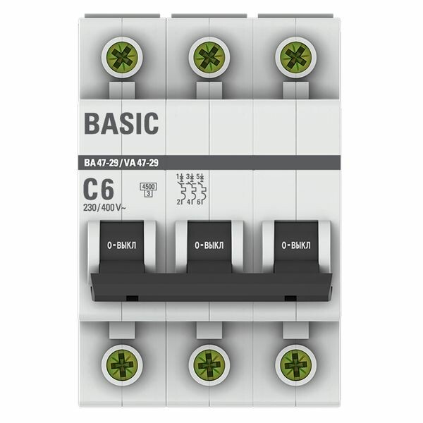 Автомат. выкл. 3-пол. 6А тип C 4,5кА серия ВА 47-29 EKF Basic
