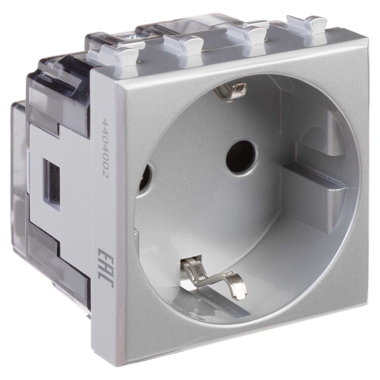 Розетка модульная, 2P+E, с з/ш, "Avanti", "Закаленная сталь", 2 модуля