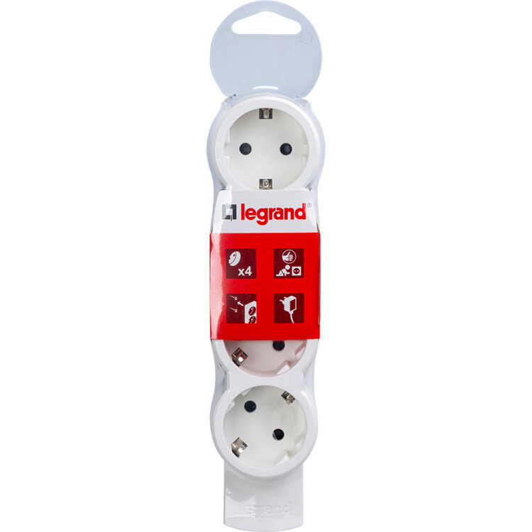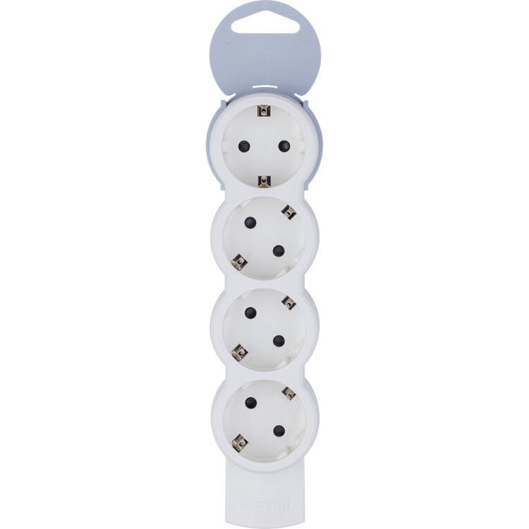 Колодка розеточная, 4 розетки, 16А, с/з, IP20, пластик, белая, без кабеля