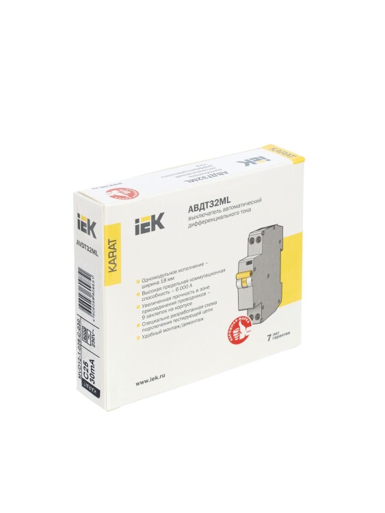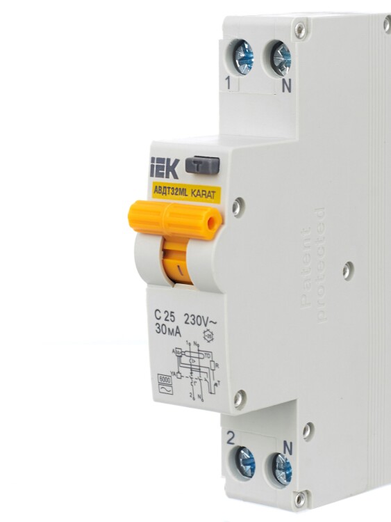 Автомат. выкл. дифф. тока 2-пол. 25А 30мА тип AC 6кА хар-ка C серия АВДТ32МL С25 30мА KARAT IEK