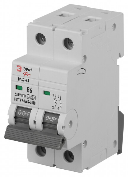 Автоматический выключатель ЭРА PRO VA63-2P06B4.5 ВА47-63 2P 6А кривая B 4,5кА