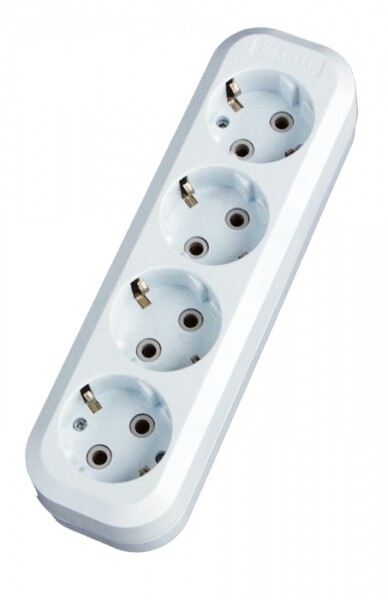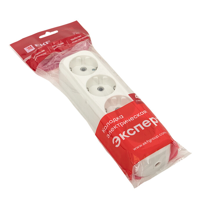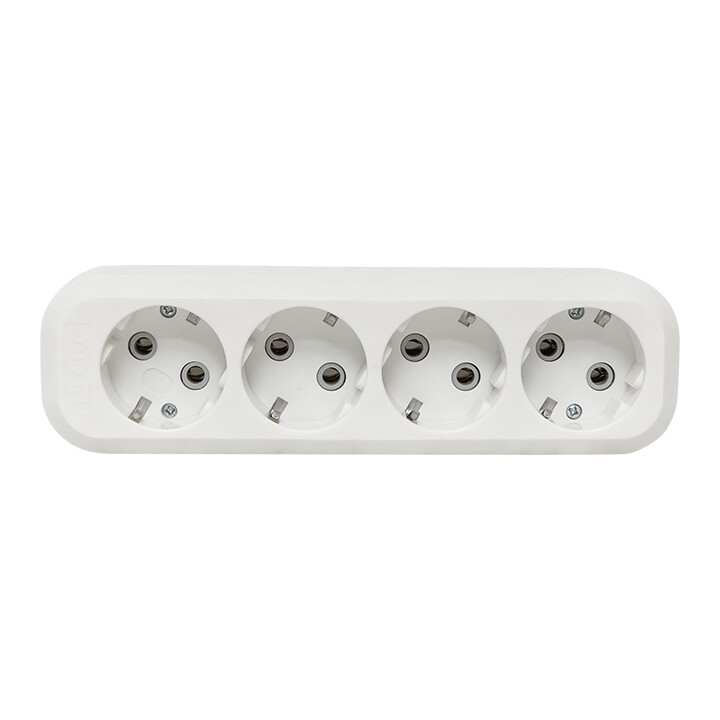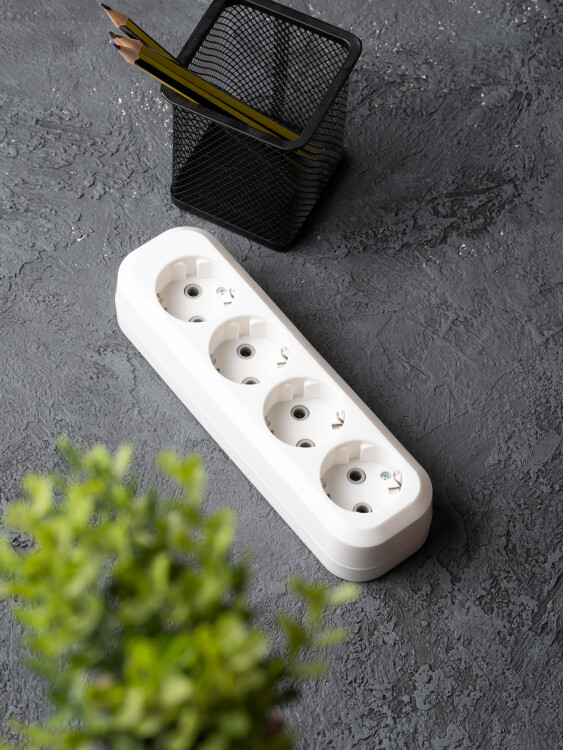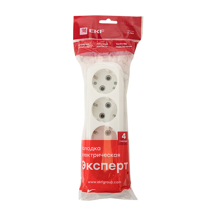 Колодка розеточная, 4 розетки, 16А, с/з, IP20, пластик, белая, Эксперт
