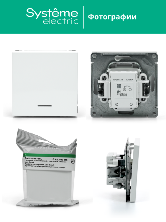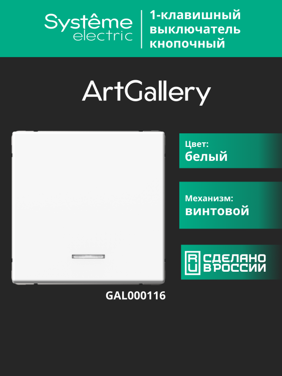 Systeme Electric ArtGallery Белый Выключатель 1-клавишный кнопочный с подсв. 10А, механизм
