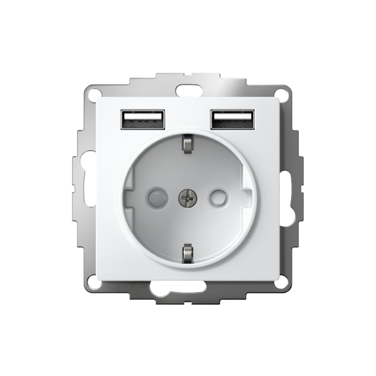 Розетка 2P+E с 2хUSB 5В/2,4А 2х5В/1,2А 16А белый AtlasDesign