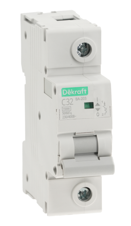 Автоматический выключатель серии ВА-203 Dekraft; 1P; ном. ток 32А; характеристика C; откл. способность 15 кА; ширина модуля 27мм. Аппараты имеют механизм мгновенной коммутации, 7 монолитных заклепок, которые повышают прочность корпуса. Боковые каналы охлаждения повышают стабильность работы при высоких температурах окружающей среды. Есть возможность установки дополнительных аксессуаров с обеих сторон устройства. Аппарат на 100% совместим с корпусами и оболочками Dekraft и Systeme Electric.