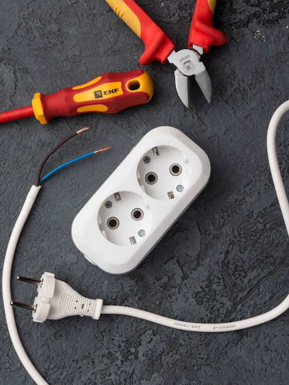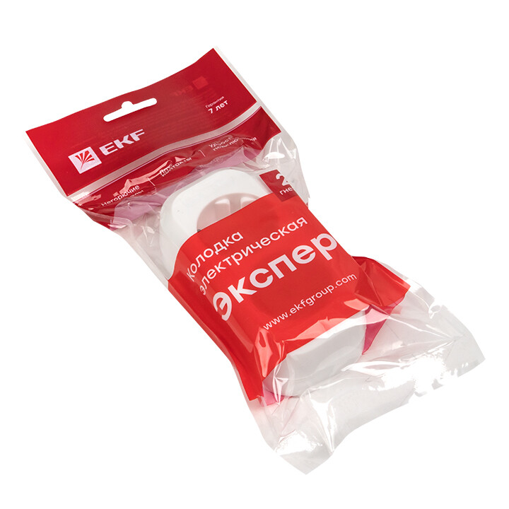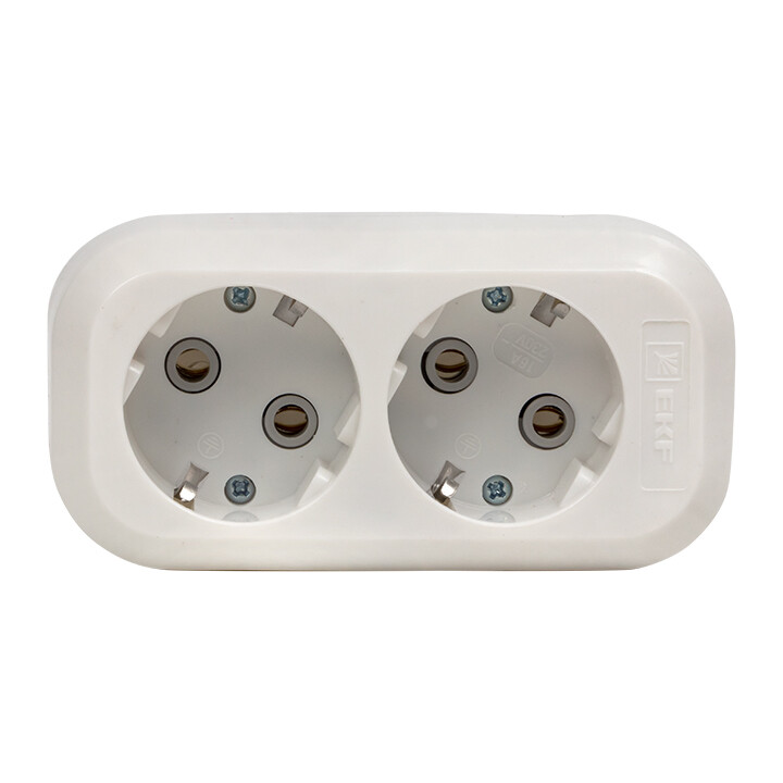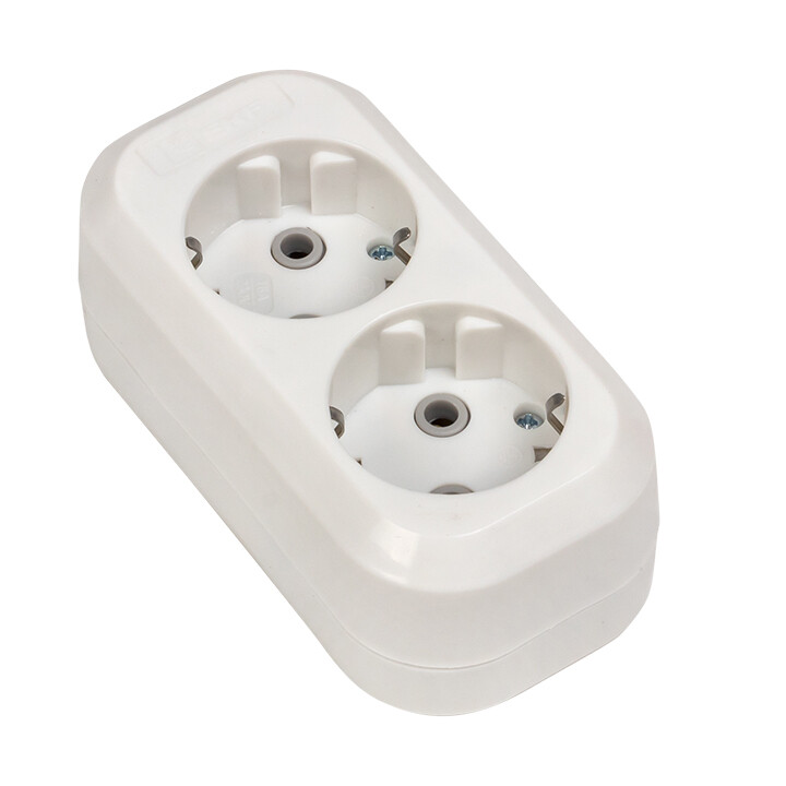 Колодка розеточная, 2 розетки, 16А, с/з, IP20, пластик, белая, Эксперт