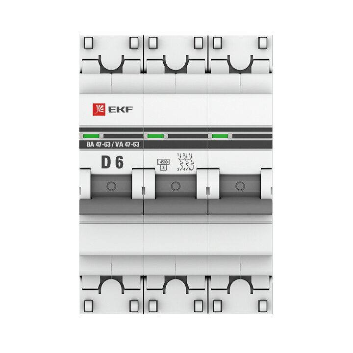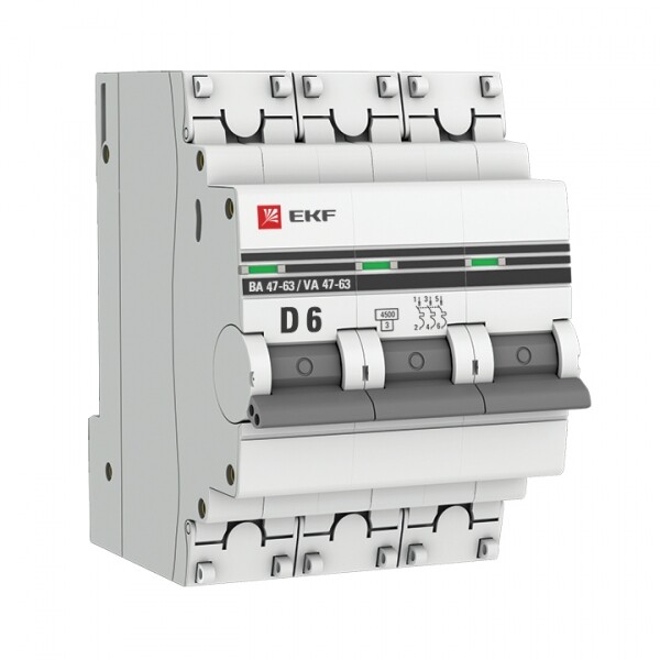 Автомат. выкл. 3-пол. 6А тип D 4,5кА серия ВА 47-63 EKF PROxima