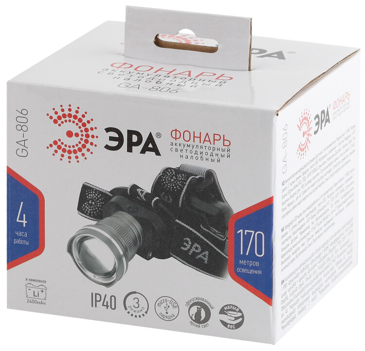 Фонарь налобный светодиодный GA-806 аккумуляторный мощный 3 режима регулируемая фокусировка