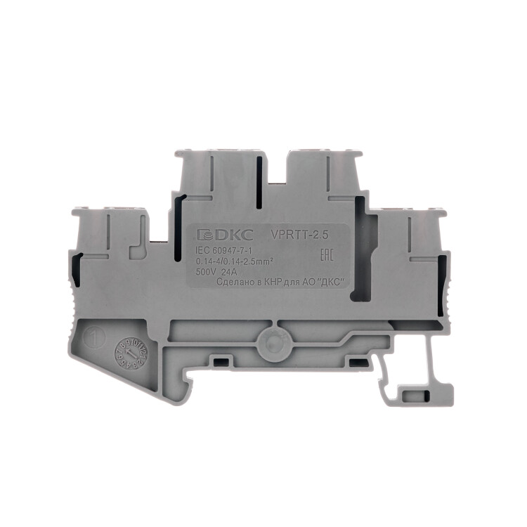 Клемма пружинная 4-х пров. 2-х уров. проходная, 2,5 мм2, серая, уровни соед. перемычкой, зажим pu