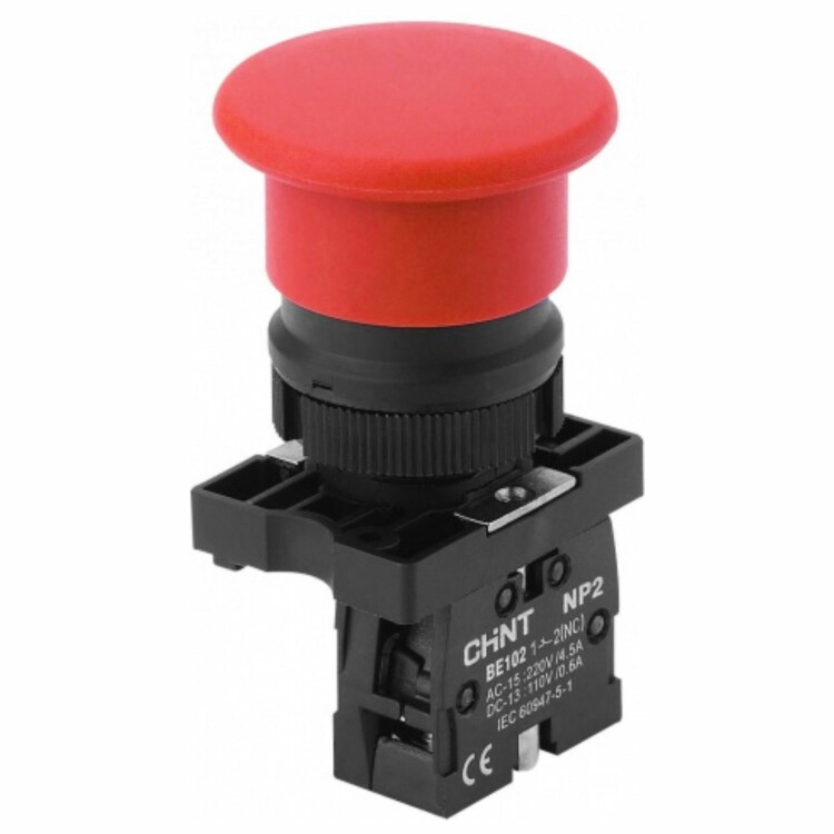 Кнопочный выкл. в сборе гриб., 1 упр. элемент красный круг. линза, 1НЗ IP40 без фиксации, CHINT