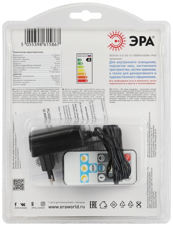 Комплект светодиодной ленты с регулируемой цветовой температурой ЭРА 5025kit 4.5-30-12-3000K/6500K-IP65