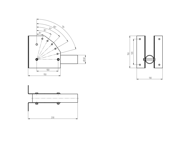 Кронштейн для уличного светильника с перемен углом 230*150*130 d60mm SPP-AC2-0-230-060