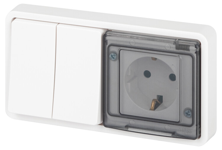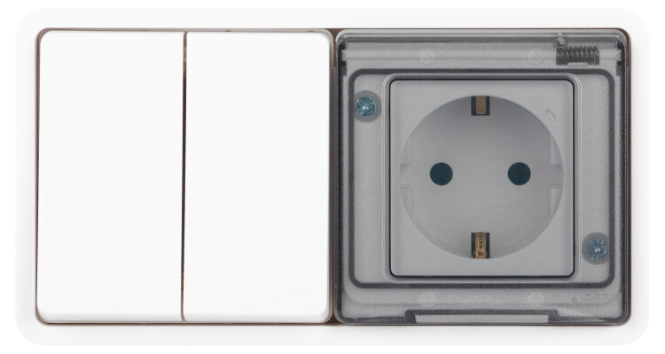 Блок розетка с выключателем ЭРА Эксперт 11-7522-01 двойной IP55, 16A(10AX)-250В, СУ, белый