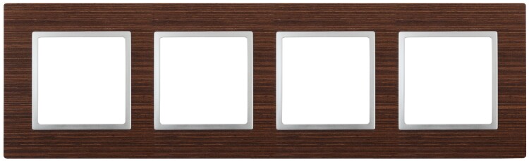 Рамка 4 поста дерево, венге+алюминий Elegance 14-5304-10