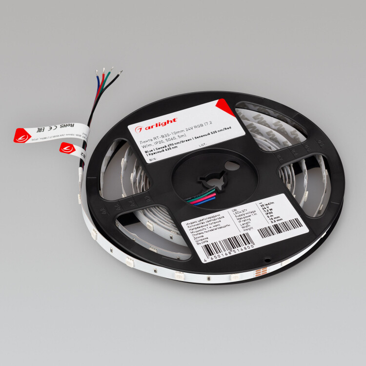 Светодиодная лента RT-B30-10mm 24V RGB (7.2 W/m, IP20, 5060, 5m) (Arlight, Открытый)