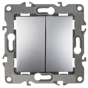 12-1106-03 ЭРА Переключатель двойной, 10АХ-250В, IP20, Эра12, алюминий (10/100/2500)