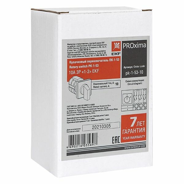 Переключатель кулачковый ПК-1-53 10А 3P "1-2" EKF PROxima