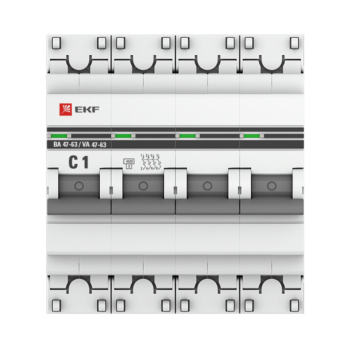 Автомат. выкл. 4-пол. 1А тип C 4,5kA серия ВА 47-63 EKF PROxima