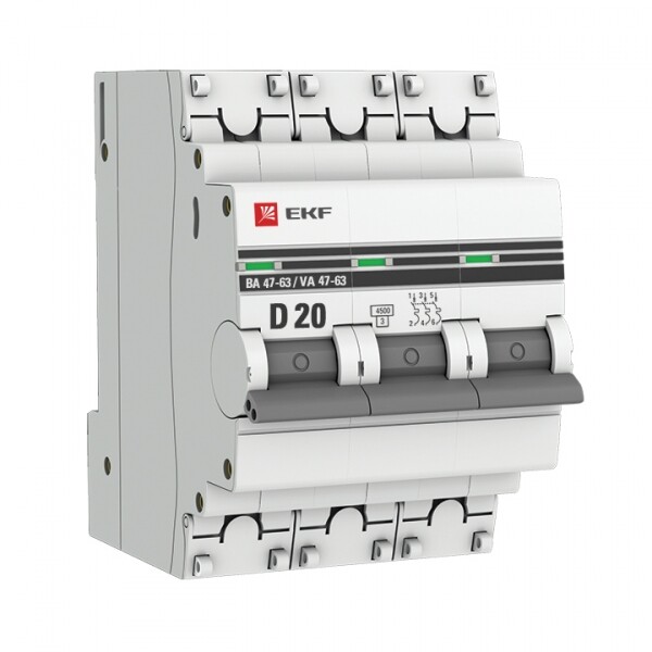 Автомат. выкл. 3-пол. 20А тип D 4,5кА серия ВА 47-63 EKF PROxima